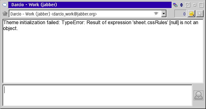 The main window comes up fine, however when I open an individual message/chat window the following error message appears in the text window: