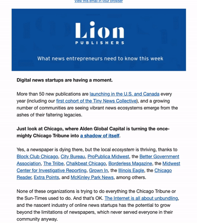 Sign up for LION's newsletter to get funding opportunities, small business tips, and other resources for independent news publishers delivered to your inbox. View our most recent issues.