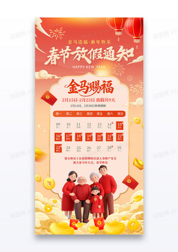 红色春节放假通知马年2026海报