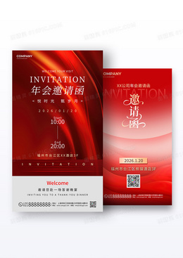红色简约2026公司企业年会邀请函手机海报套图