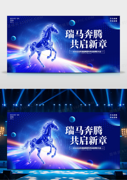 蓝色3D风格共启新章马年年会展板2026年会展板马年展板
