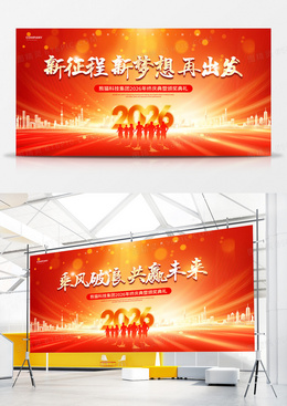 红色大气2026马年年会舞台背景展板设计