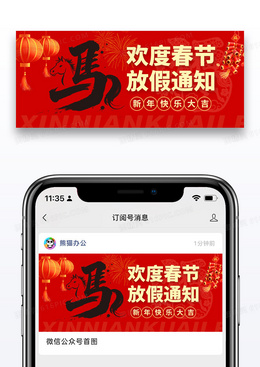 红色新春2026新年马年欢度春节放假通知公众号微信封面