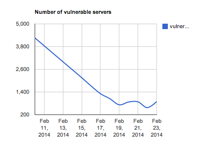 In the aftermath of this massive attack, we decided to publish the list of networks originating these attacks hoping to have them fix the problem. Since the blog post we’ve been monitoring the networks to see whether attention to this problem has helped close the vulnerable NTP servers. The results are encouraging:
