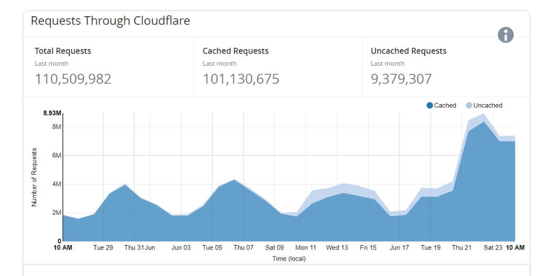 Just applied some @Cloudflare cache magic I experimented with to get @troyhunt's Pwned Passwords API cache hit ratio to ~91%, to a large JS CDN (@unpkg) during a slow traffic period. Traffic 30mins post deploy shows a growing ~94% Cache Hit Ratio (with a planned cache purge!). pic.twitter.com/ZQmfzEi4Y2