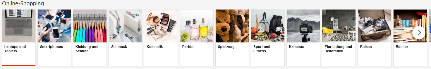 Bing erleichtert Ihnen die Suche nach den besten Angeboten, indem Ihnen die beliebtesten Shoppingkategorien auf einen Blick angezeigt werden. Sind Sie auf der Suche nach Kleidung, Parfüm, Spielzeug oder High-Tech-Geräten? Klicken Sie auf die gewünschte Kategorie und schon erhalten Sie die passenden Ergebnisse.