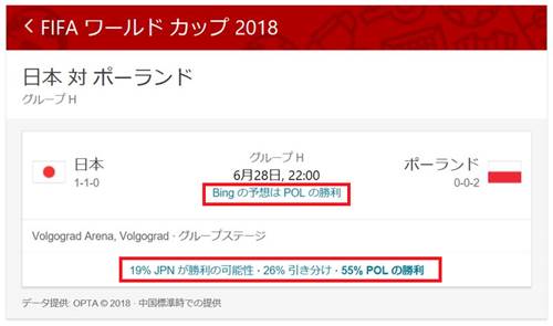 まだ行われていない試合に関しては、Bing独自のデータとアルゴリズムをもとにした、ちょっとした試合予測もあるので、友達や家族と一緒に楽しむように、Bingといっしょに試合の行方を見守ってください。