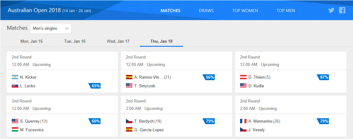 Bing are following the Aussie Open, with an experience featuring all the match information, draws, and news on the top male and female players making headlines this year.