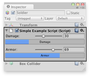 mp.armor = EditorGUILayout.IntSlider ("Armor", mp.armor, 0, 100); ProgressBar (mp.armor / 100.0f, "Armor");