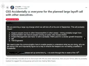 Many Reddit users debated whether the CEO’s actions were careless or whether the email exposure might force the company to handle layoffs more transparently.