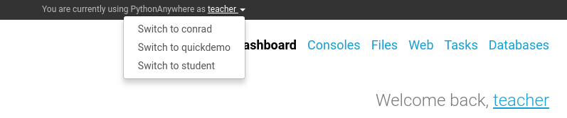 The first thing to do is to get familiar with your normal account and how plain-old PythonAnywhere works. We've had lots of teachers and students on the site over the years, finding it useful with its current set of features. So if you haven't signed up for an account already, do that now! Start a console, navigate to the Files menu, edit and save a Python file and run it. Your students will be able to do all that.