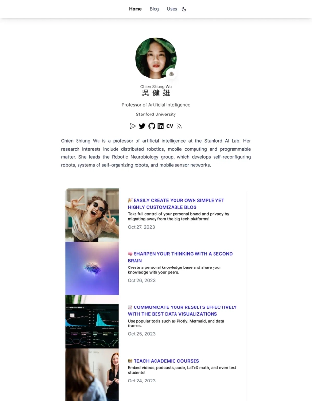 "HugoBlox saved me 40+ hours setting up my lab website. The ORCID integration means my publications update automatically—no more manual CV updates! My citations have increased 3x since launching my site."