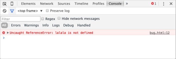 bug.html:12dengan nomor baris di mana error itu muncul.