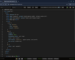 A minimalist code editor designed for building single-file web apps with HTML, CSS, and JavaScript.