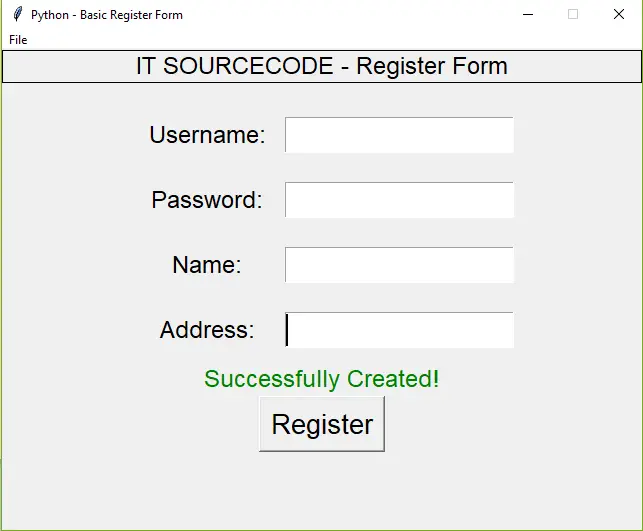 A Registration Form also includes the downloadable User Registration Form In Python Source Code for Free.