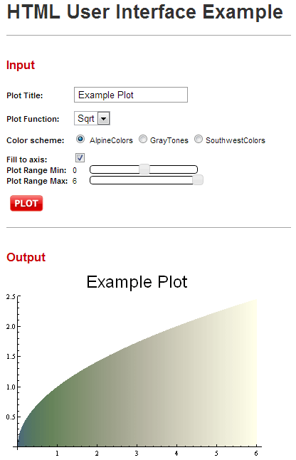 As an example of this, go to the example at http://localhost:8080/webMathematica/Examples/UserInterface/PlotUserInterface.jsp. The page will look like this: