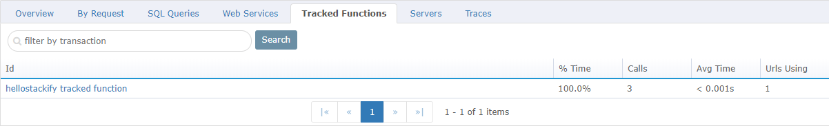 Tracked Functions are an advanced feature of Retrace and have to be manually set up in your application code. Once they are configured to your app the functions specified will show here. To learn more about Tracked Functions view Performance: Tracked Functions