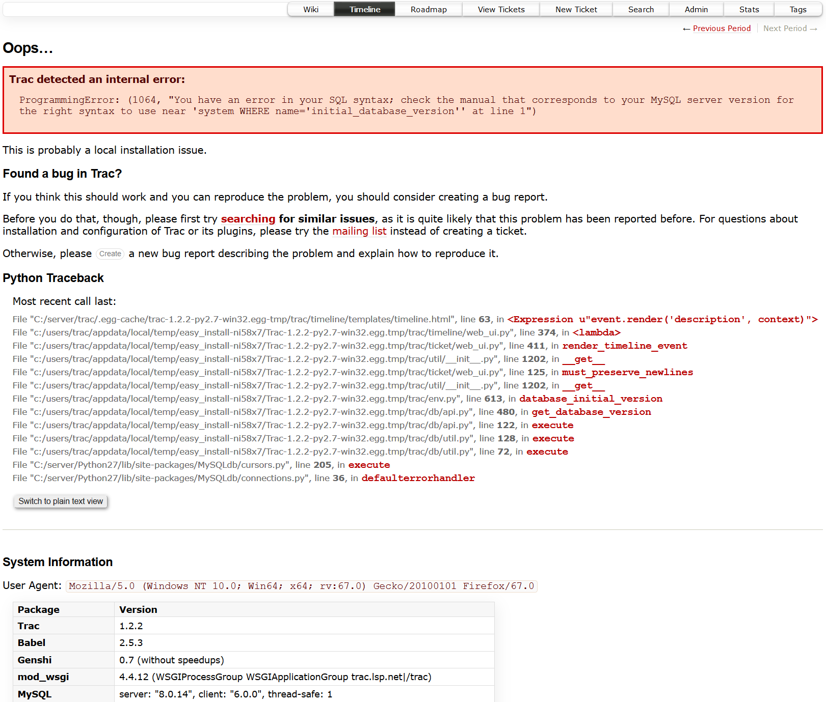 Trac detected an internal error:
