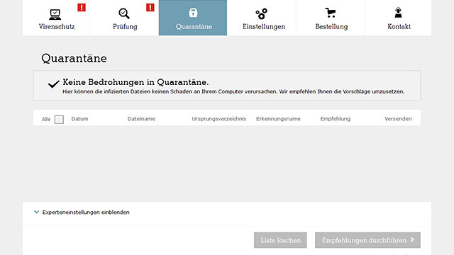 | Isolierung der Schadsoftware | | |