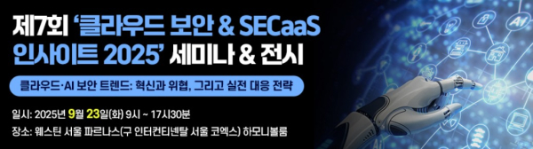 ‘제7회 클라우드 보안 & SECaaS 인사이트 2025’에서 클라우드·AI로 인한 보안위협과 대응 방안, 그리고 클라우드·AI를 활용한 보안 대응 방안, 주목해야 할 솔루션·서비스와 성공사례를 만나보세요.
