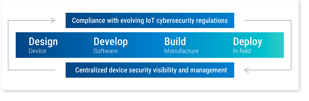 Enquanto governos de todo o mundo procuram combater as ameaças à segurança da IoT, os fabricantes de dispositivos continuam a encontrar uma complexidade crescente nas regulamentações. Alguns padrões são voluntários, enquanto outros são imposições legais, como a Regulamentação de dispositivos médicos da União Europeia (EU MDR) e regulamentações da FDA para certificações propostas. Isso significa que os fabricantes precisam encontrar maneiras de permanecerem informados e em conformidade — muitas vezes em várias regiões com diferentes regulamentações — sem interrupções no desenvolvimento, produção, vendas e suporte.