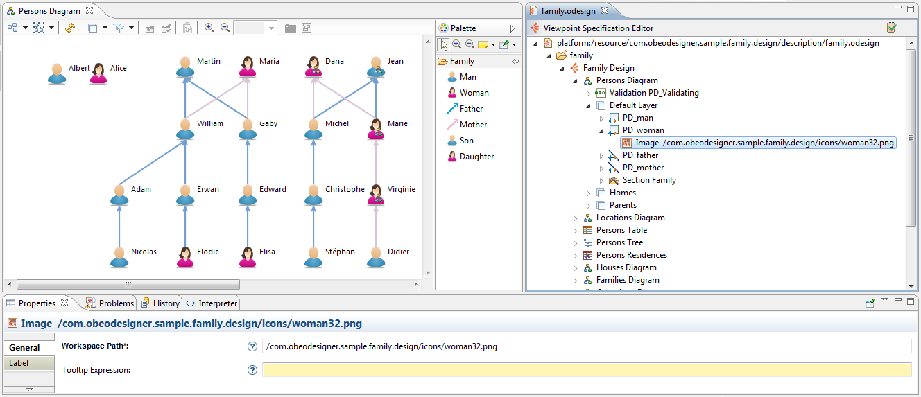 A Graphical Designer created with Sirius offers a complete modeling workbench to manage your models and their corresponding representations (diagrams, tables, matrices, trees and sequence diagrams).