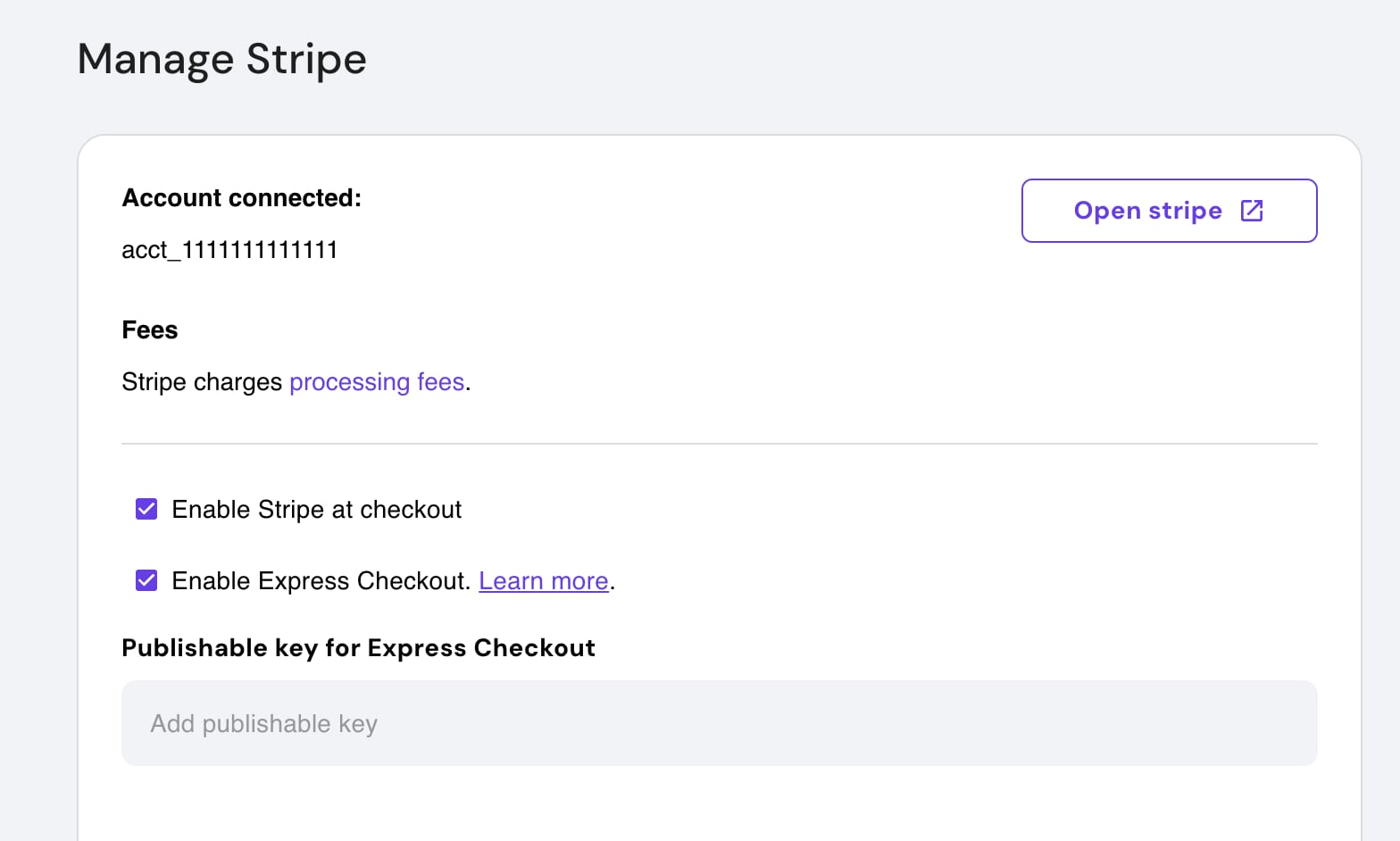 Enable Stripe by following the instructions to connect your account.