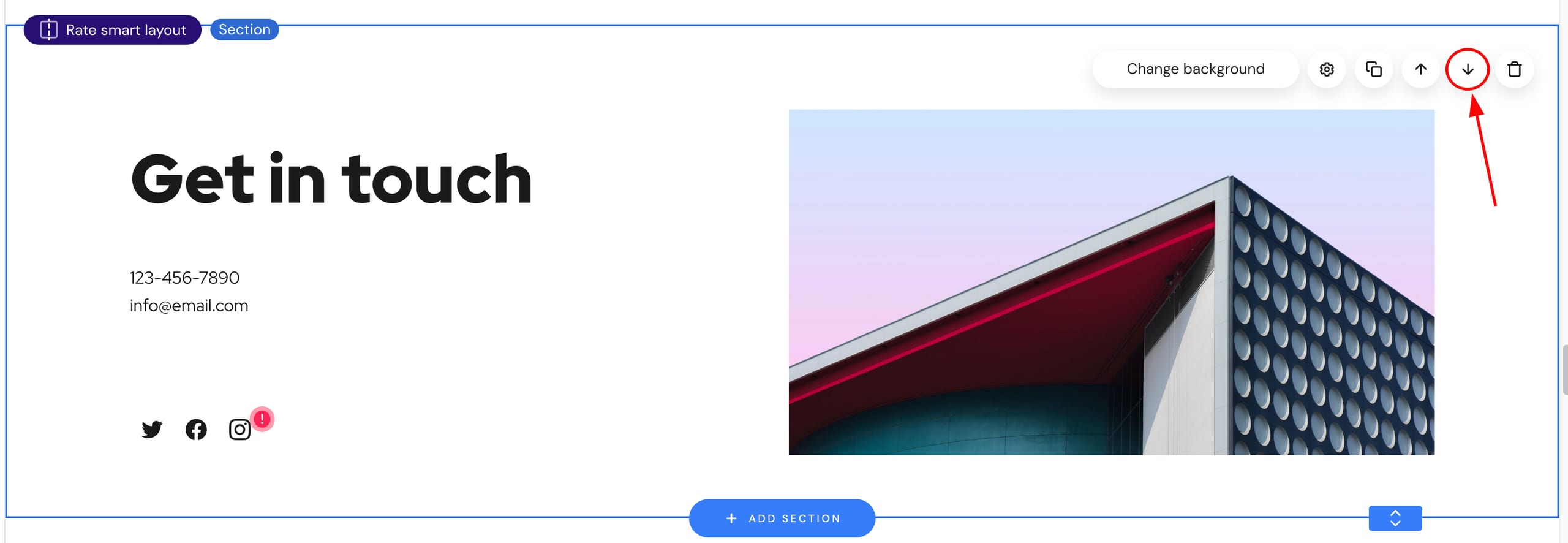 1. Within the editor, keep your cursor in between two sections and click Add section: