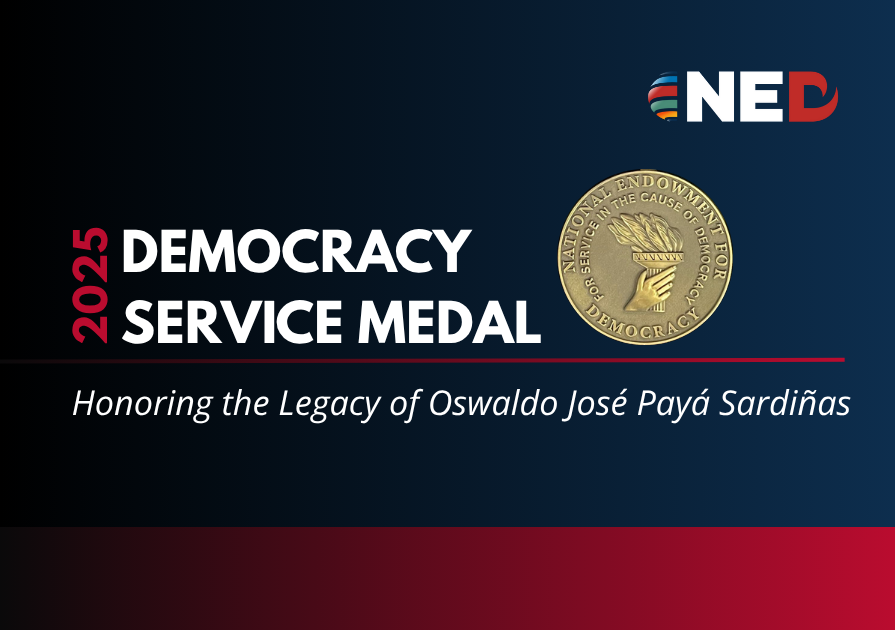 Read MoreAwarded by the National Endowment for Democracy’s Board of Directors, the Democracy Service Medal honors individuals whose personal courage has advanced freedom, human rights, and democratic governance around the world.