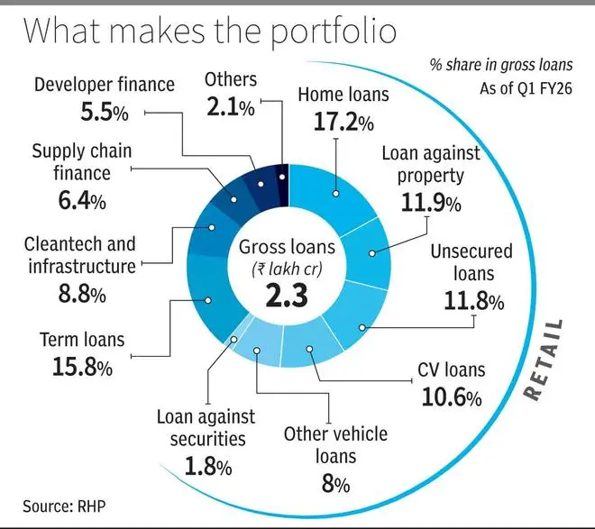 At a gross loan book of ₹2.3 lakh crore, Tata Capital is the third-largest private sector diversified NBFC, after Bajaj Finance (₹4.4 lakh crore) and Shriram Finance (₹2.7 lakh crore). With the Tata brand equity, funding has never been a hurdle, and thus, its gross loan book has grown 37 per cent between FY23 and FY25. Its debt securities are rated AAA with ‘stable’ outlook. Tata Capital is a non-deposit taking NBFC.